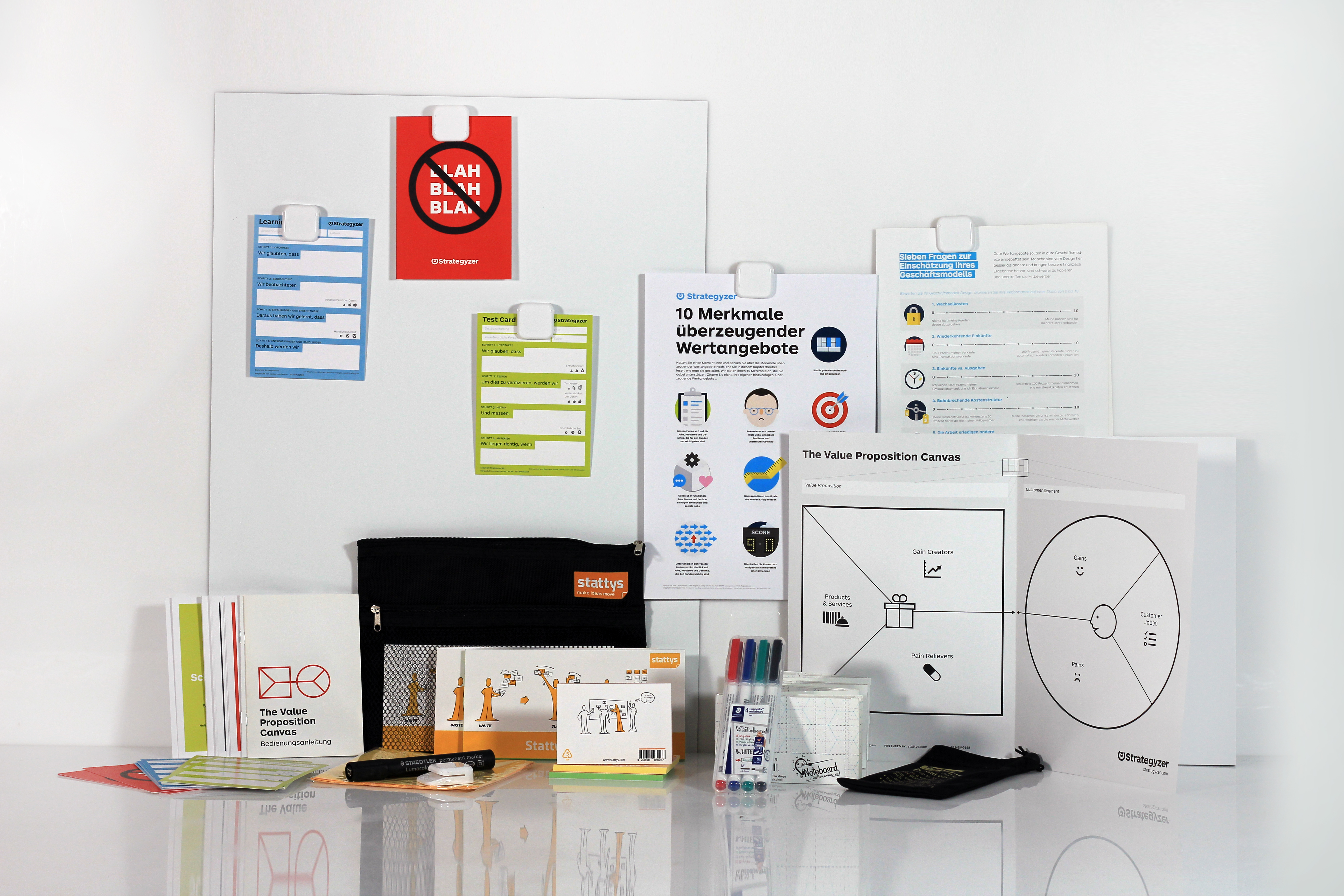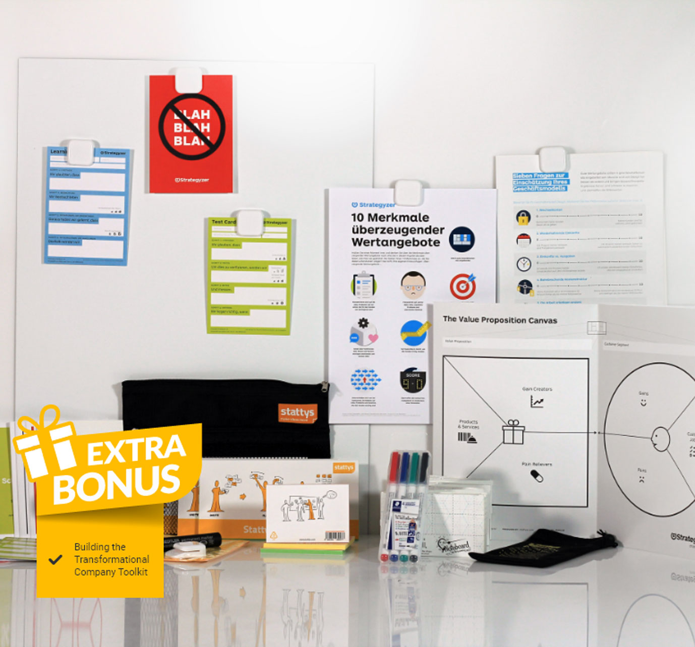 Das perfekte Set für Ihr Business. Dieses Set ist gefüllt mit zahlreichen Materialien, die Ihnen bei der Entwicklung von Prozessen, Projekten oder Ideen in Ihrem Unternehmen weiterhelfen. Neben den klassischen Stattys Notes und Schreibmaterialien überzeugt dieses Set mit Canvas, Anleitungen, Lernkarten und vielem mehr. Als besonderen Bonus erhalten Sie in diesem Set ein Building the Transformational Toolkit als Add-on für 0 €. Legen Sie noch heute los!